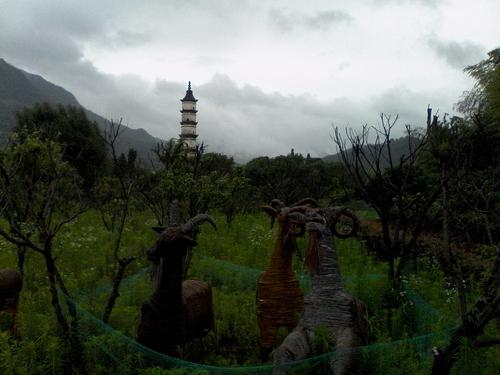 村口的道路两旁由草绳编织而成的卡通动物在欢迎着大家,还未来及细瞧它们的憨态,古村的标志-----抟云塔已映入眼帘。据导游介绍,这座塔始建于明代,它本是一座风水塔,村里人又称之为文风塔,它和清朝同治年间建起的文昌阁一起皆为了祈求文运亨通。抟云塔塔身无任何雕饰,造型端庄、秀丽;文昌阁雕梁画栋、四角飞檐、玲珑别致。文昌阁北侧是一座土地祠,村里人用它来祈求丰年。文风塔、文昌阁、土地祠三者合一,完整地反映了农业时代叶氏家族 “耕可致富,读可容身”的理想与追求。
