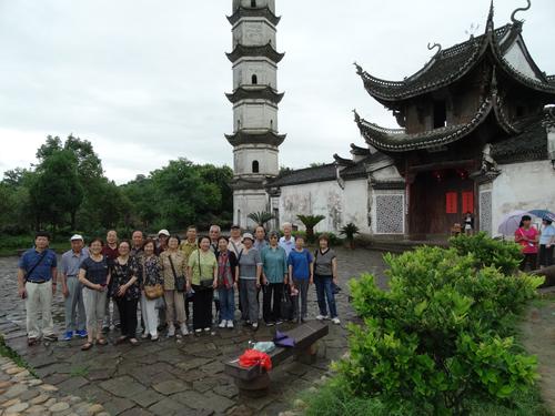 游览中雨时而轻柔、时而滂沱,却丝毫没有降低退休教师们的兴致,他们相互搀扶、细心聆听,缓步前行中有思索、有惊叹、有笑声。相信新叶古村行会成为他们记忆中难忘的片段。