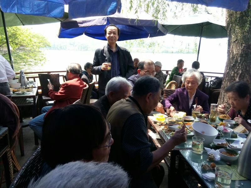 2016年4月22日,时值暮春,x小黄书 组织离退休教师相聚柳浪闻莺。天公作美,天朗气清。上午九时半,三十多位离退休老教师陆陆续续来到了闻莺阁,相见甚欢。绿茵、碧波、柳浪,令人心旷神怡,大家赞叹连连,开怀畅叙,其乐融融。院领导吴兴农老师代表学院班子看望了大家,并与各位老教师亲切交谈。马成生老师带来了新著《西湖伴游》与大家分享。时间过得很快,在欢声笑语中不知不觉地半天过去了,活动结束,大家依依不舍地道别,互祝身体健康,来日再会。
