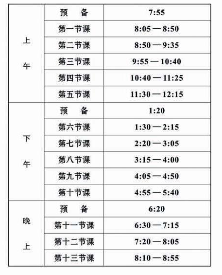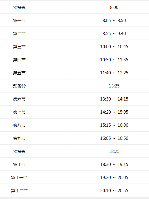 下面是部分高校的作息时间表供参照: