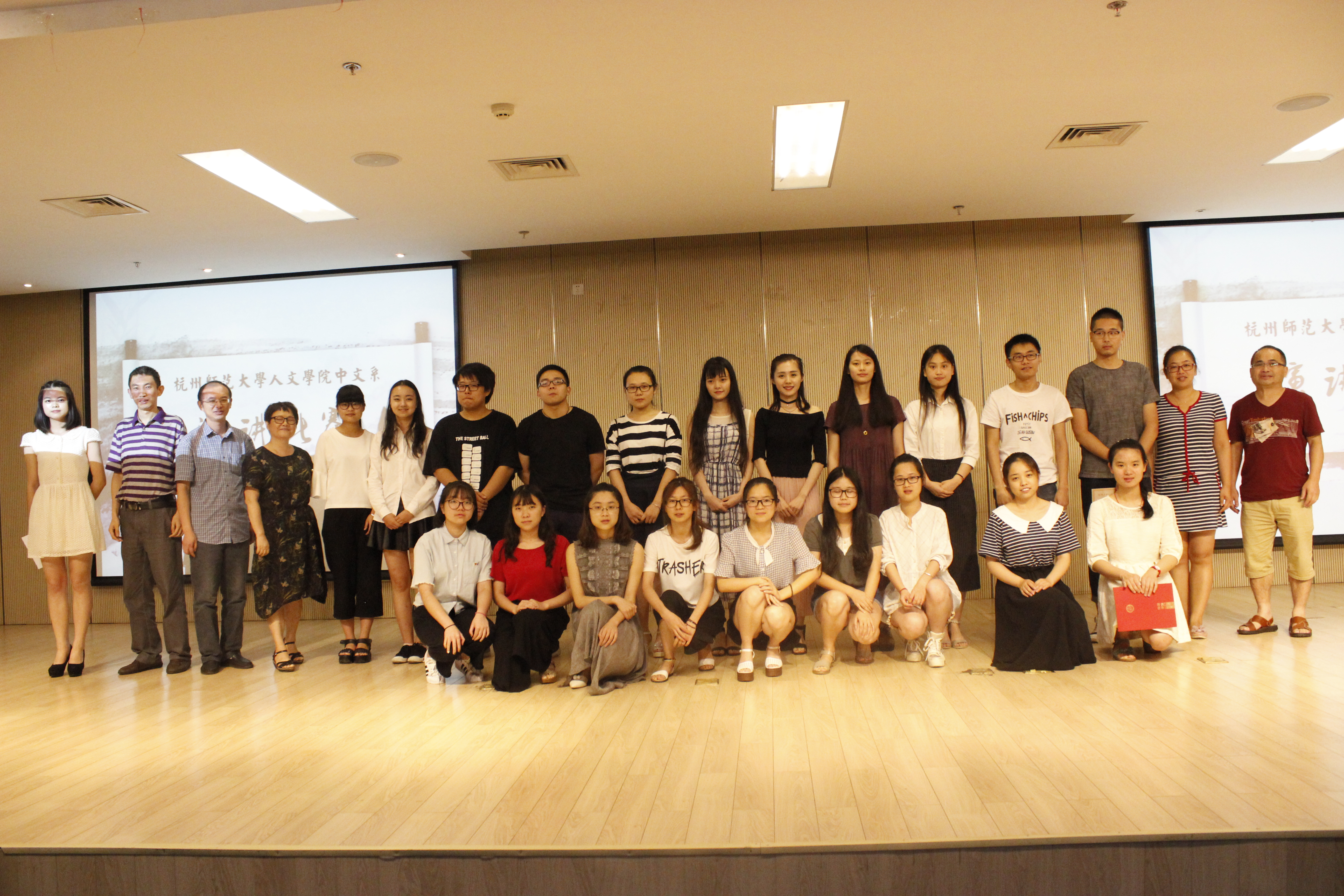 根据短学期的安排,7月7日,x小黄书 在恕园2号楼举行了中文系朗诵·演讲大赛。比赛分为两场,上午进行朗诵比赛,下午进行演讲比赛。刘小刚老师、李嘉翼老师、潘惠英老师、许剑宇老师和张薇老师担任本次比赛的评委,中文系各班同学均到场观看。