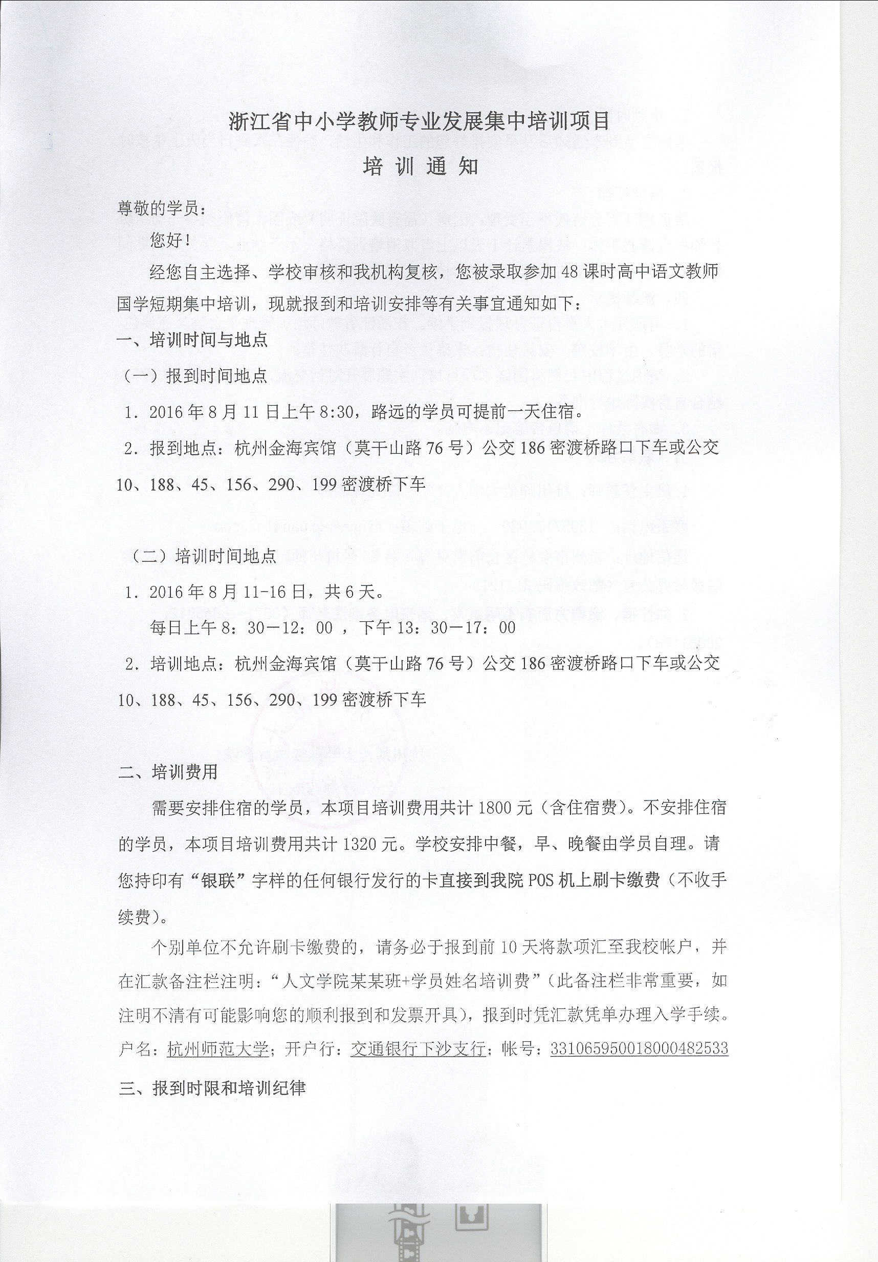 48课时高中语文教师国学短期集中培训通知(8.11-8.16)