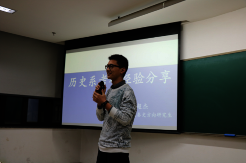 4月9日晚18点,追寻学长智慧系列活动之考研经验分享会在恕园12号楼105举行。来自历史131班的鲁超杰学长(现已顺利考取四川大学先秦史方向研究生)在分享了历史方向的考研经验。