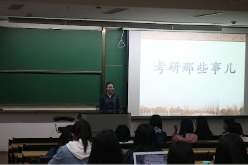 5月4日晚,由马滢昊学姐(现已顺利考取北京语言大学汉语国际教育方向研究生)担任主讲人的考研经验分享会在恕园13号楼101室如期举行。