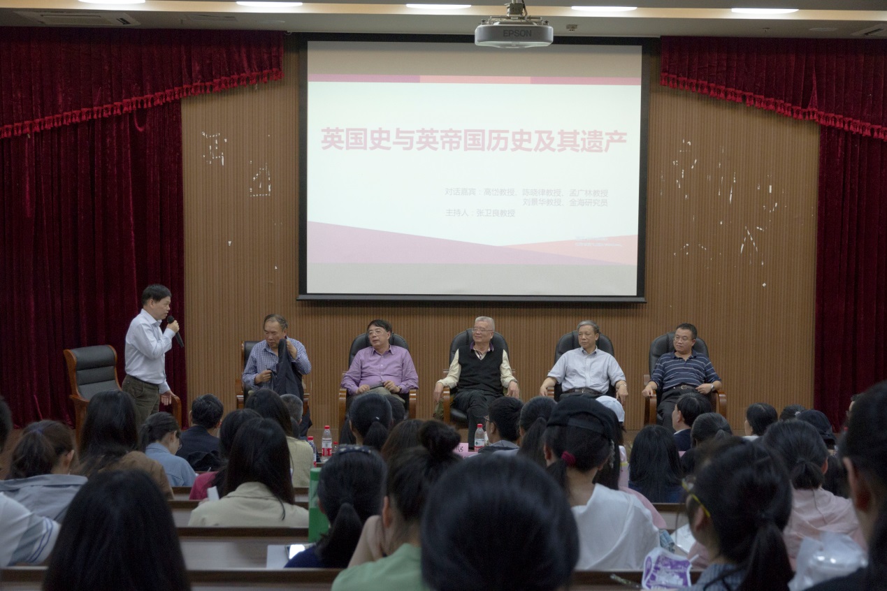本次会议的另一大特色是开辟了中国英国史研究高峰论坛的对话专场,高岱教授、陈晓律教授、孟广林教授、刘景华教授和金海研究员作为对话嘉宾就主题为“英国史与英国帝国历史及其遗产”展开对话,与会嘉宾及200多位学生参加了对话活动,这样的精彩对话活动受到了师生的欢迎。