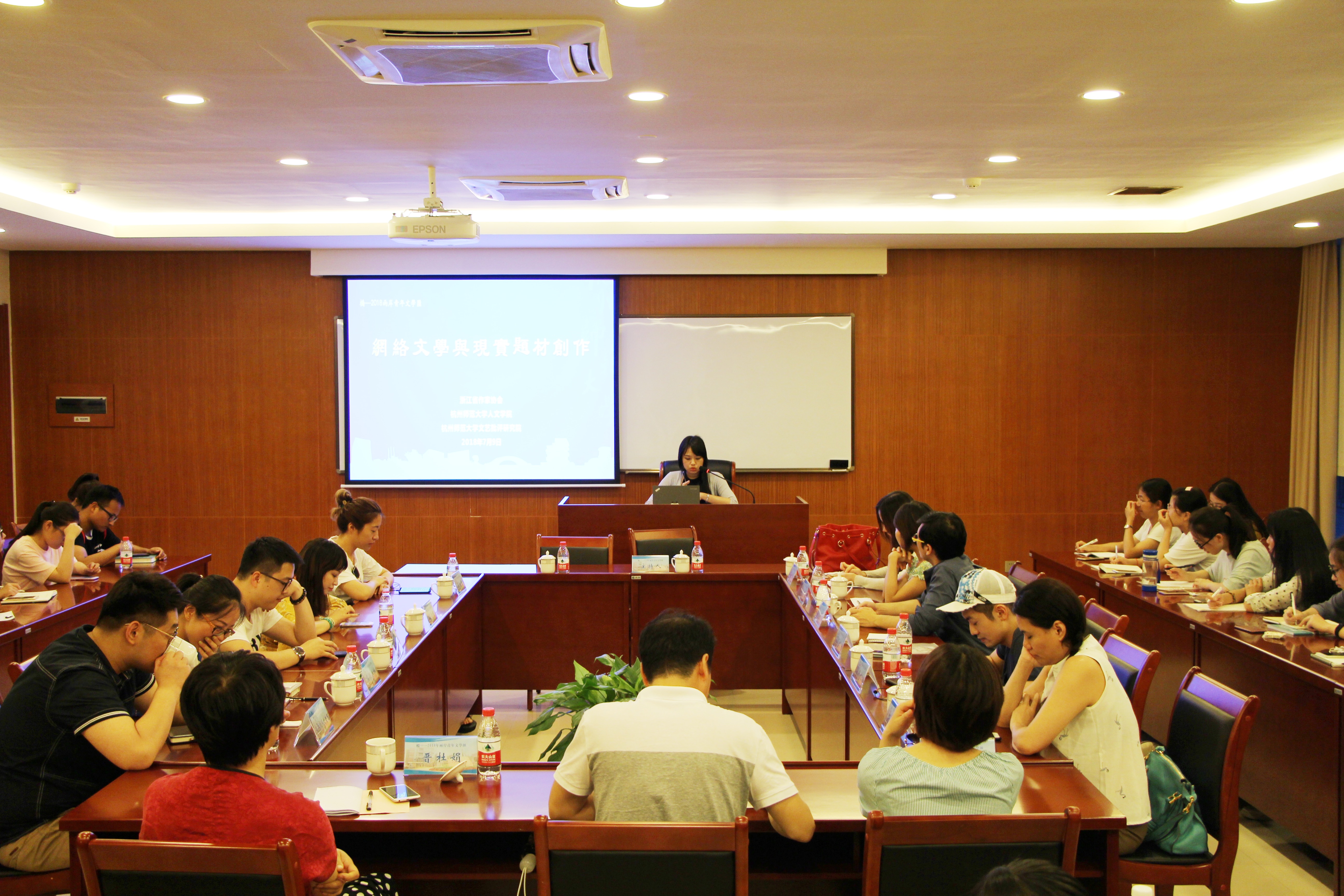 7月9日晚18:30,由浙江省作家协会、杭师大x小黄书 、杭师大文艺批评研究院共同主办的“桥-两岸青年文学汇”对话专场在我校城研中心409、418室举行。对话按两个主题分场举行,分别为“新媒体时代文学的社会认同”和“网络文学与现实题材创作”。师生们对这次文学对话活动热情高涨,两个会场内均座无虚席。