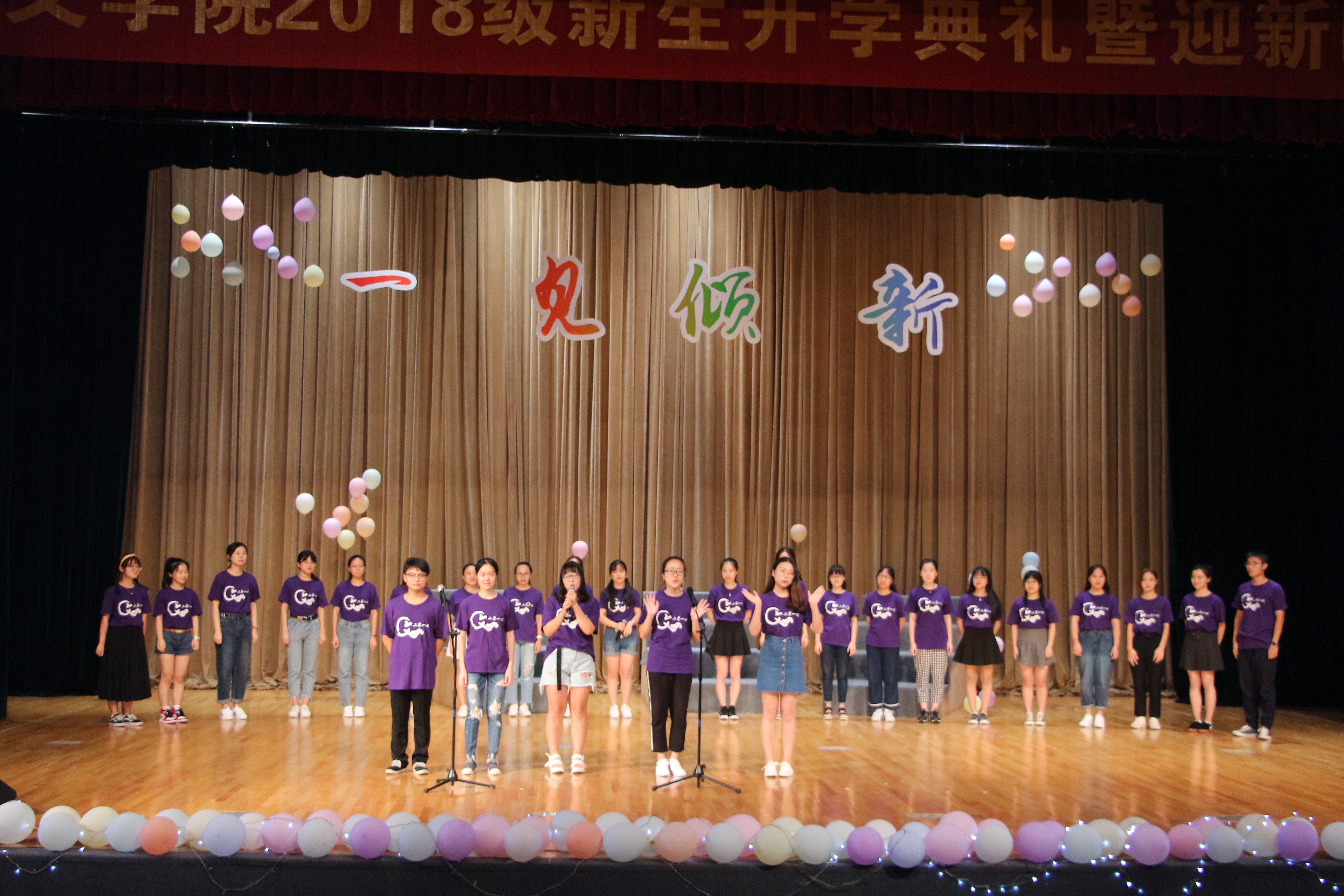 开学典礼后的“一见倾新”迎新晚会,学院社团为新生献上了独特的社团节目,新生们也以歌曲串烧、舞蹈串烧、朗诵等表演展现了2018级新生朝气蓬勃、才华横溢的形象。新生学长们带来可爱的儿歌串烧,新生班主任老师和辅导员带来了歌曲《朋友》,将现场的气氛推向又一个高潮,新生们在台下自发进行互动,场面温馨。最后,团委学生会成员集体歌唱《爱因为在心中》,为整场晚会画上圆满句号。