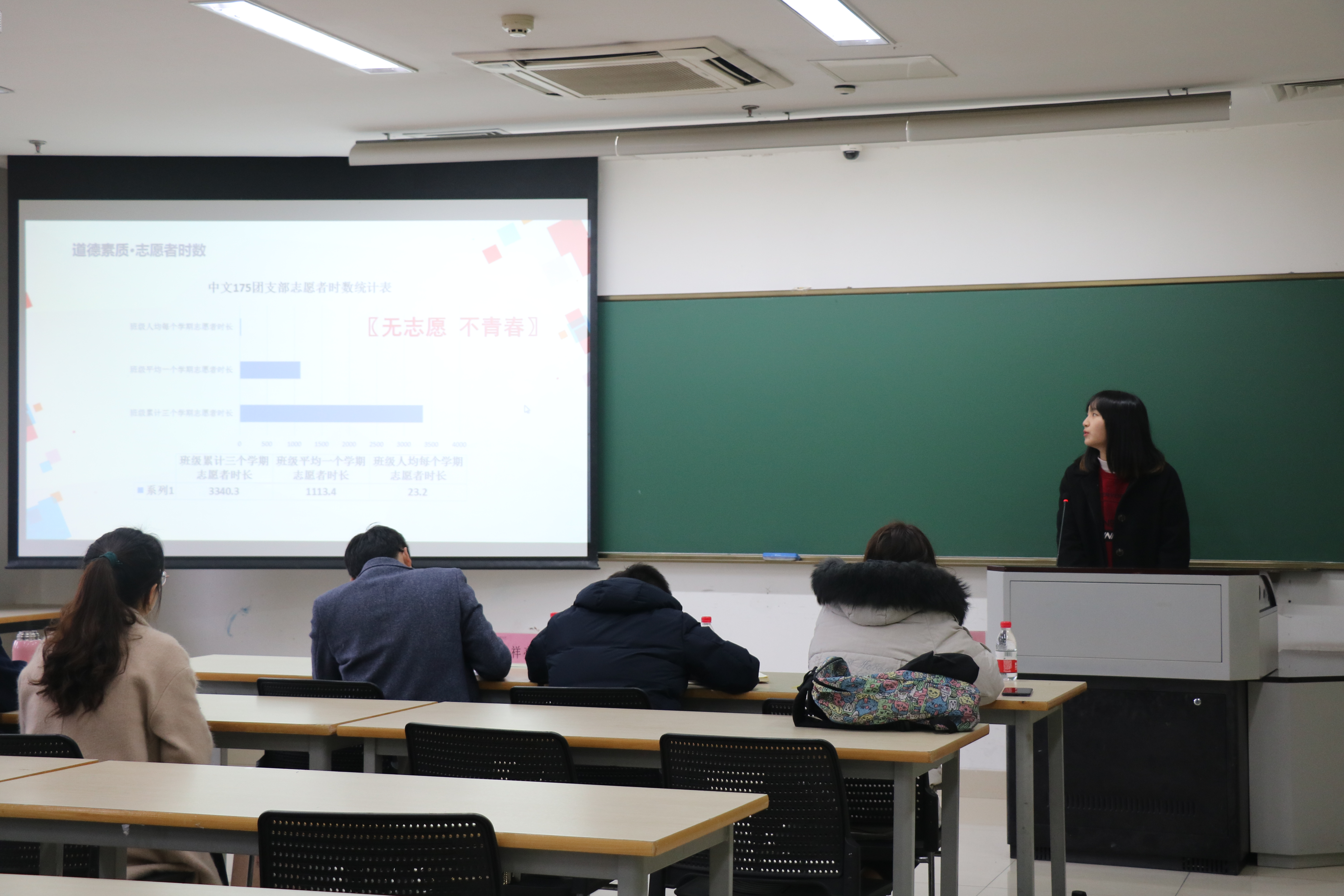 在优秀团干部与十佳团员的答辩环节中,各候选人从基本情况、工作经历、获奖情况、社会实践、科研竞赛、志愿活动等多个方面具体阐述过去的一个学年里取得的进展,并作出了未来发展的展望。在团支部的答辩环节中,各候选团队依次上台从支部介绍、支部建设、支部活动、支部荣誉等方面进行答辩展示。评委老师根据答辩团队、学生个人的事迹材料和现场陈述,依照评审办法以及选手表现,坚持“公平、公正、公开、择优”的评选原则,最终中文175团支部等4个团支部获得先进团支部称号,傅白雪等13位同学获得优秀团干部称号,贾珍艳同学获得十佳团员称号。