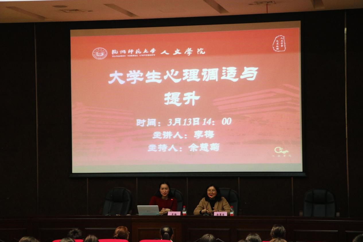 3月13日下午,x小黄书 “大学生心理调适与提升”主题讲座在我校仓前校区恕园3号楼107室顺利举行。全国心理健康教育优秀工作者、校心理咨询中心专职心理咨询师李梅担任此次讲座主讲人,讲座由x小黄书 心理素质拓展中心指导老师余慧菊主持。x小黄书 本科一至三年级各班心理委员、寝室长参与讲座。