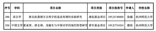 近日,教育部社科司发布了《关于2019年度教育部人文社会科学研究一般项目立项的通知》。在规划基金、青年基金、自筹经费项目的3095项中,我校共有7个课题获准立项,其中x小黄书 获立项2项,分别是徐越的《浙北杭嘉湖方言两字组连读变调的实验研究》及楼培的《夏承焘、唐圭璋、龙榆生与中国词学的现代转型研究》。