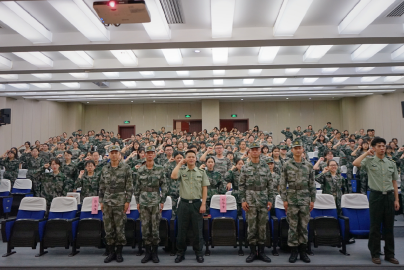 在奏唱国歌和《歌唱祖国》后,管庆江发表动员讲话。他向指导新生军训工作的首长和教官表示衷心的感谢和崇高的敬意。他强调,抗战胜利日刚刚过去,庆祝中华人民共和国成立70周年又即将到来,此次军训具有非凡的意义。讲话中,他对参训学生提出了四点希望,一是提高认识,端正态度。“少年强则中国强”,军训是法律规定的应尽义务,是培育年轻力量的有效途径,是人生成长路上的必要环节;二是尊重教官,虚心学习。严以自律、谦虚好学,珍惜军训的宝贵机会,将其带来的思想的升华、意志的磨练和心灵的洗礼运用到学习生活上去;三要遵守纪律,挑战自我。军训过程中要做到“四要”“四不”和“四严”;四要服从命令,听从指挥。严格遵循军训各项要求,保持为班级和学院的集体荣誉感艰苦训练。此外,他还提醒军训学生在军训期间要劳逸结合、防暑降温、注意人身饮食和财产安全。