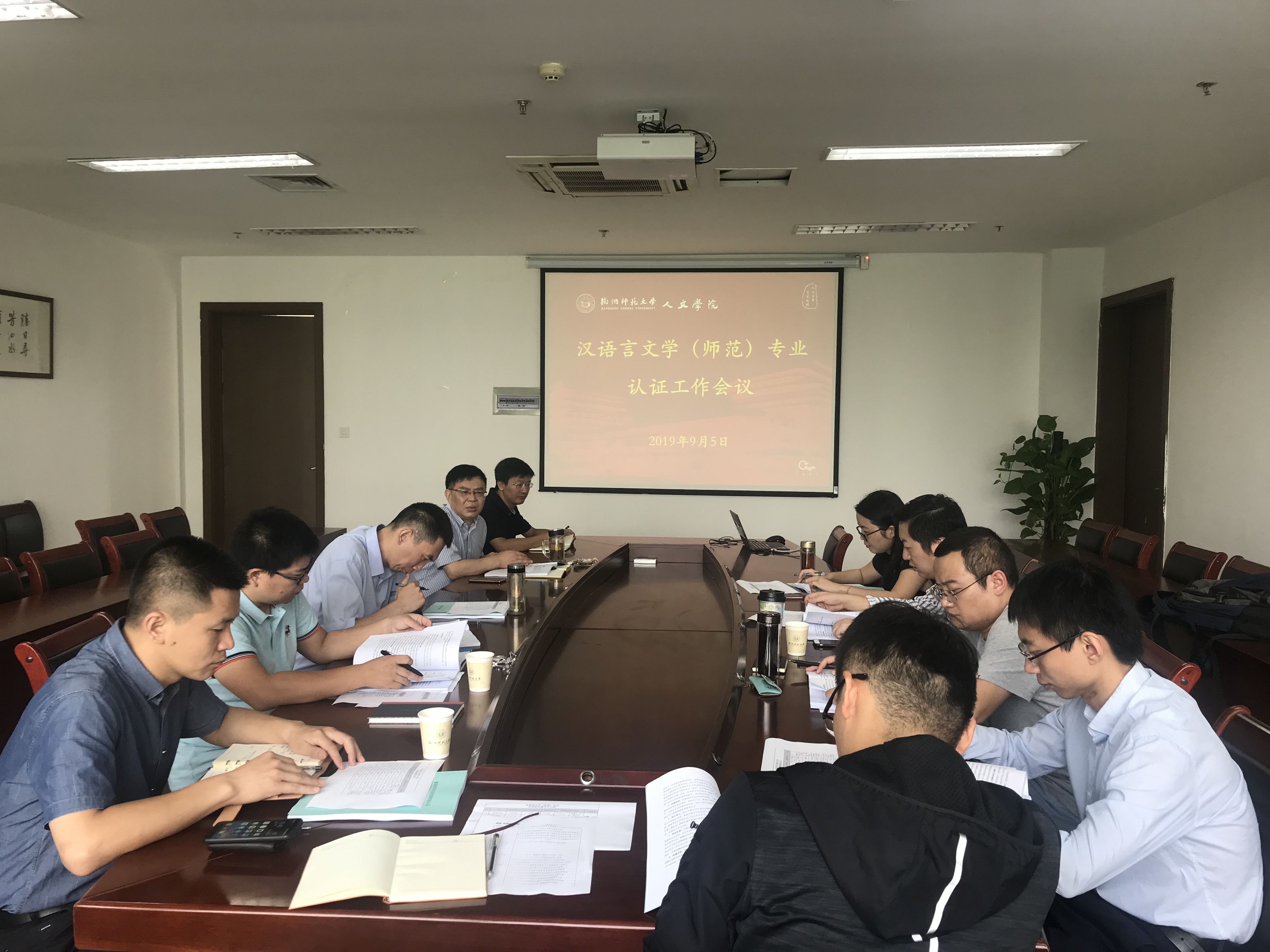 9月5日上午10点半在恕园23-312,学院召开汉语言文学(师范)专业认证自评报告修订会议,学院领导及参与认证工作的全体教师参加会议。