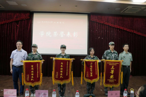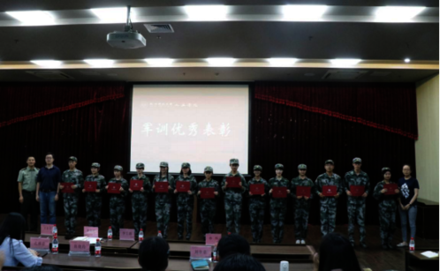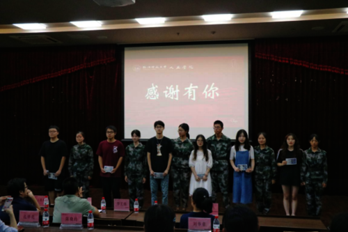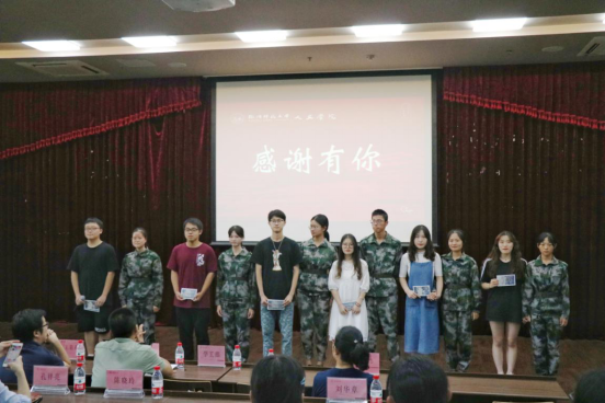 大会为优秀学员和优秀寝室进行了颁奖。同时,学院以“感谢有你”的主题对每个班的新生学长代表进行了颁奖感谢。新生学长代表堵嘉锋向2019级的同学们分享了作为新生学长与大家彼此包容、彼此鼓励、彼此感动的成长过程,并祝愿2019级的新生在面对新事物、新环境、新状态的时候,能够积极主动去拥抱一个美满的大学生活。新生代表朱艾讲述了在军训中从叫苦叫累到主动加练的成长过程,指出了军训以坚毅的意志和强健的体魄帮助新生实现更好的自己。
