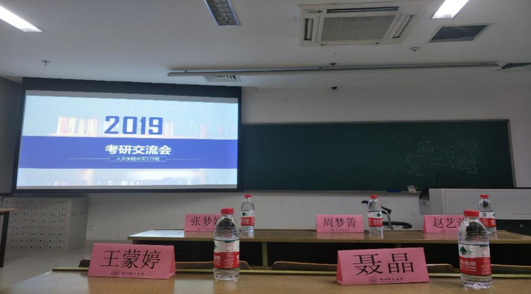 9月17日晚,中文175班“考研交流会”在恕园14号楼405室顺利举行。此次交流会由叶黎明老师策划,班长陈洁负责主持,x小黄书 语文学科教学方向研一新生:聂晶、赵艺蓉、周梦箐、张梦娅、王蒙婷担任主讲嘉宾,向同学们传授“考研秘笈”。