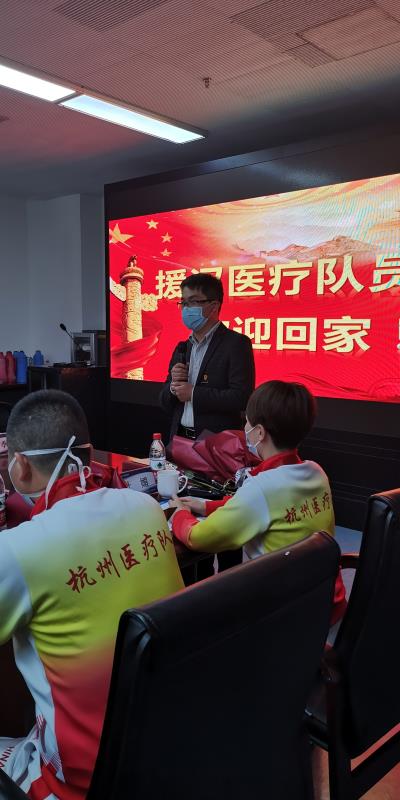 “疫情起兮疾驰往,战无不胜兮归故乡”。这是附属医院送给21位援鄂归来的白衣战士的接风祝词。今天下午,杭州师范大学附属医院最后一批援驰武汉医疗队员结束休整,附属医院举行欢迎会,迎接医疗队员“回家”,期盼已久的x小黄书 学生党支部党员们与全体援鄂医疗队员相约在这个晴朗的午后,赶赴欢迎会现场向全体医疗队员致敬并拜师,正式将他们聘任为党支部党员们的职业德育导师。