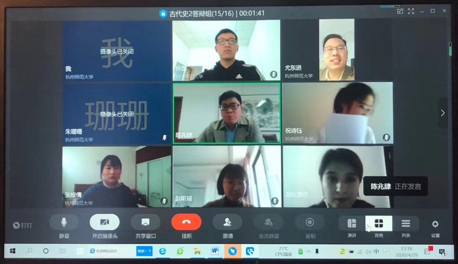 4月25日、29日,学院分别开展了2020届中文系、历史系本科生毕业论文线上答辩会。答辩会开始前,各答辩小组成员提前进入线上答辩会议室,并做好话筒、视频测试及屏幕共享等工作。答辩正式开始时,与线下答辩流程相同,首先,答辩学生针对论文框架结构及核心内容进行了简要陈述,并对论文创新性成果与不足进行了总结;其次,答辩老师针对论文的研究思路、研究内容等方面进行了专业点评,指出了不足之处,给予了悉心指导,并针对论文提出2-3个问题,以便进一步了解论文内容及学生研究情况;在所有答辩学生个人陈述完毕后,学生针对答辩老师提出的问题进行一一作答,并与老师进行交流。最后,在所有学生回答完毕后,答辩老师经过线上讨论,对小组论文进行总体评价。