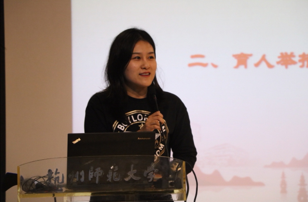在大会上,余慧菊讲解了新生手册。结合着新生手册相关条文,她解释了各种违规情况及处罚条例,并从考试纪律、心理健康、防范诈骗、人际关系等方面提醒新生强化纪律意识,筑牢安全防线。同时,她以学院品牌化建设为例,希望同学们多参加学生活动,多品读经典著作,培养师德,提高师能,弘扬师风。