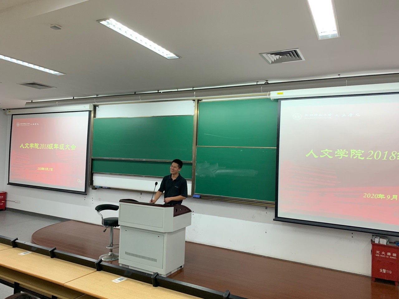 为帮助2018级学生做好学业规划、明确未来发展方向,9月27日下午4时,x小黄书 于恕园31号楼201室召开2018级全体学生大会,党委副书记管庆江老师、18级辅导员余慧菊老师出席会议,18级全体学生参加会议。