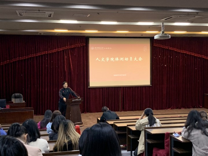 10月28日下午4时,x小黄书 2018级学生体测动员大会在恕园23号楼弘毅厅举行,来自汉教181、人教181、历史181和中文181班的130位参加2020年浙江省高校学生体质健康状况抽测的学生参加会议,院党委副书记管庆江、公体部主任黄忠兴、学院辅导员余慧菊、陈晓玲等出席会议。
