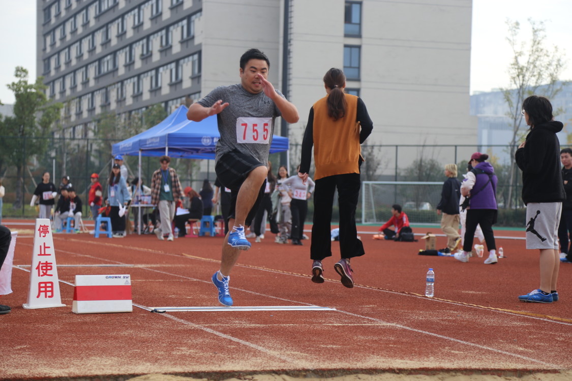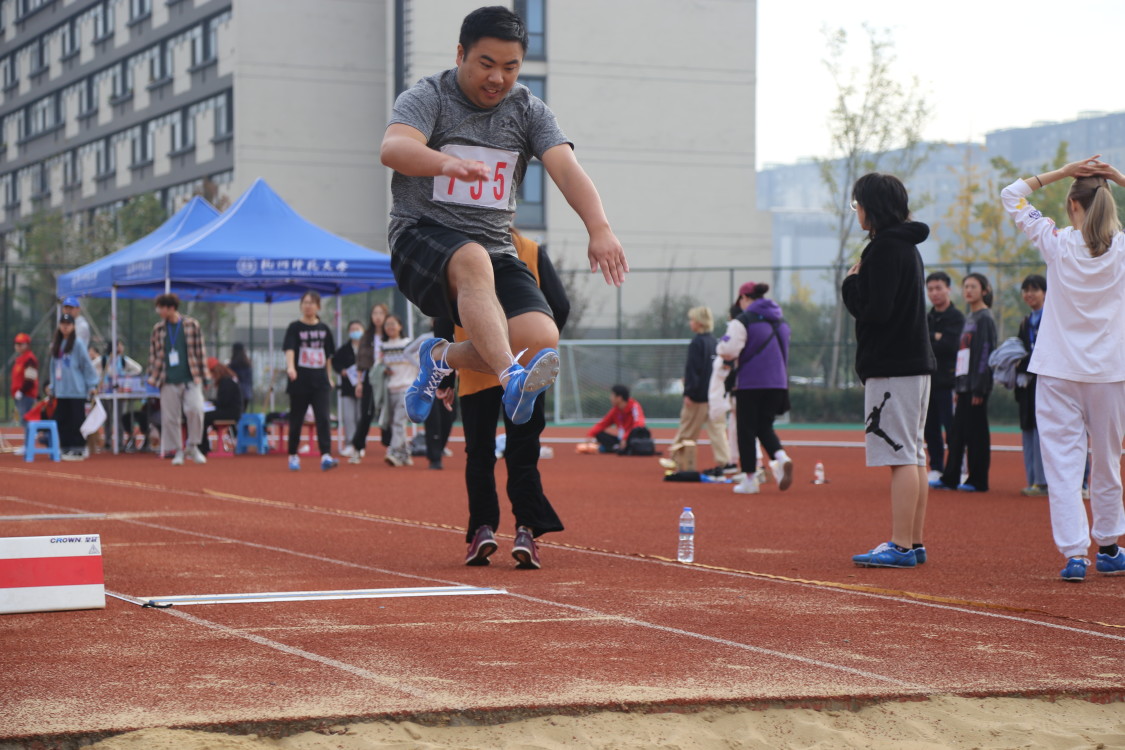 11月7日上午,我校第41届运动会各项赛事于仓前校区东体育场如火如荼地进行。镜头——拉近,锁定到x小黄书 三位正在准备跳远比赛的老师。