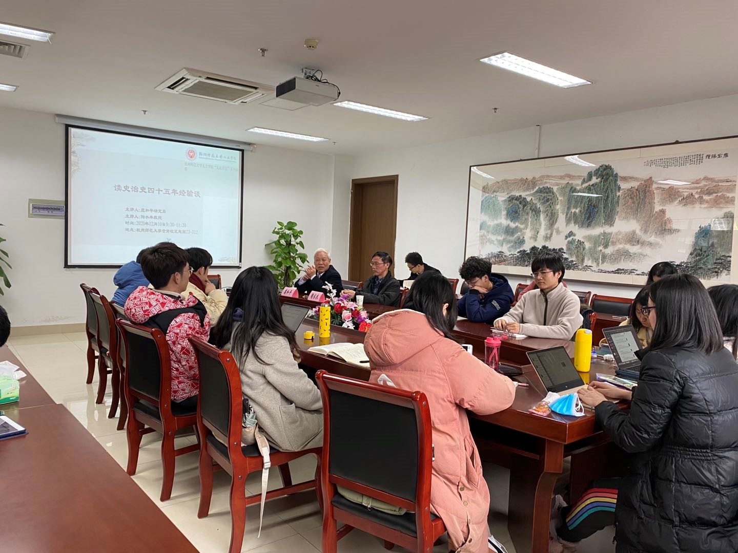 12月10日上午,章太炎故居纪念馆“太炎讲坛”、中国史一流学科B类名家系列讲座在x小黄书 312会议室开讲。主讲嘉宾是中国社会科学院近代史研究所研究员、博士生导师虞和平教授,讲题是“读史治史四十五年经验谈”。杭州师范大学浙江省民国史研究中心陶水木教授主持,x小黄书 范立舟教授、王才友老师和历史学专业研究生共30余人参加。