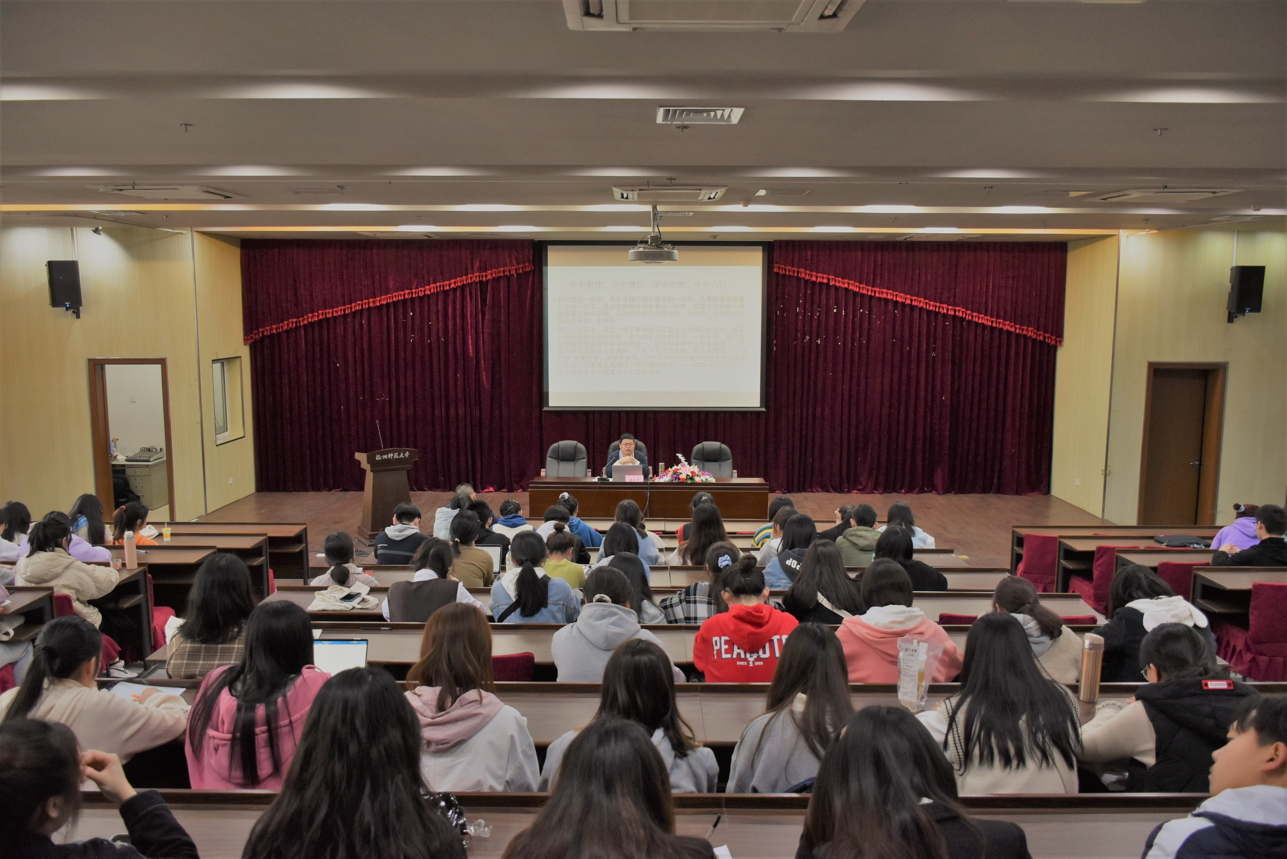 于3月24日下午邀请校党史宣讲团成员、历史学系主任周东华教授在恕园23号楼弘毅厅主讲“百年党史中的春夏秋冬”。学院教师代表和学生组织全体成员参加。讲座由学院党委副书记管庆江主持。