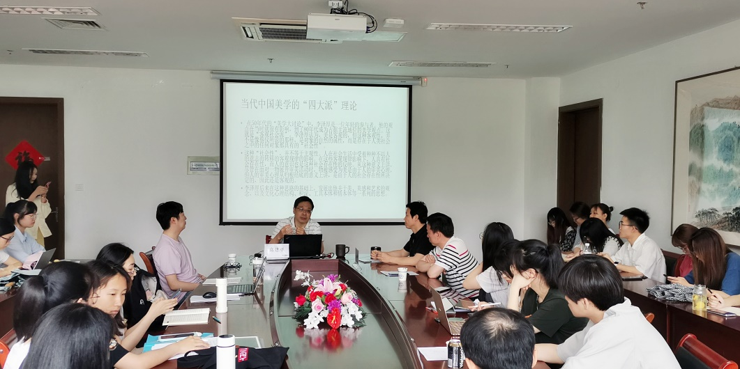 讲座开始,单小曦老师从学术地位高、学术成果丰硕、学术研究组织能力强等三个方面对高建平研究员进行了介绍。在讲座环节,高建平老师先从20世纪50-60年代美学“四大派”形成的背景谈起,回溯了美学“四大派”形成的独特语境,期间,他结合自身的经历,与在座师生共同分享许多未经历史纪录的事件,不仅增强了讲座的趣味性,也丰富了大家的背景知识。随后,高老师逐一介绍了美学大讨论中“主观派”、“客观派”、“主客观统一派”和“客观社会派”等各派的观点,他批评了20世纪80年代中国美学研究企图建立“第五派”现象,强调美学研究应少谈派别,多谈问题。此外,高老师还谈及了对“实践”、“生命”、“身体”、和“生态”等几个核心的美学概念的理解,鞭辟入里,给人以深刻的启迪。最后,高老师从更为宏观的视野上探讨了对“心的美学”、“物的美学”和“符号的美学”等几个重要美学方向的认识,他认为今天我们研究美学不应是从美和美感的分离出发,而应该从审美活动出发,从面对的现实和实践出发,这些观点都极具宏阔性。