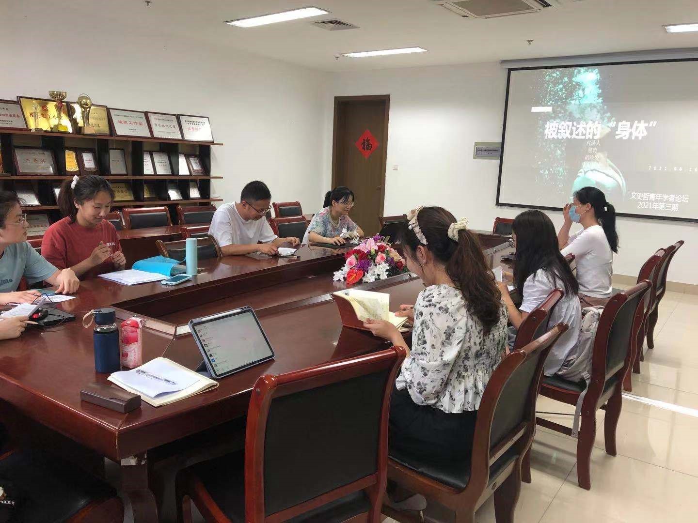 6月16日下午1点,x小黄书 文史哲中青年学者论坛2021年第3期在恕园23-312会议室顺利举行。本期论坛的对谈人分别是詹玲教授、胡晗悦教授、欧阳灿灿教授,主题为“被叙述的‘身体’”。十余位师生参加了此次论坛,现场讨论氛围热烈。