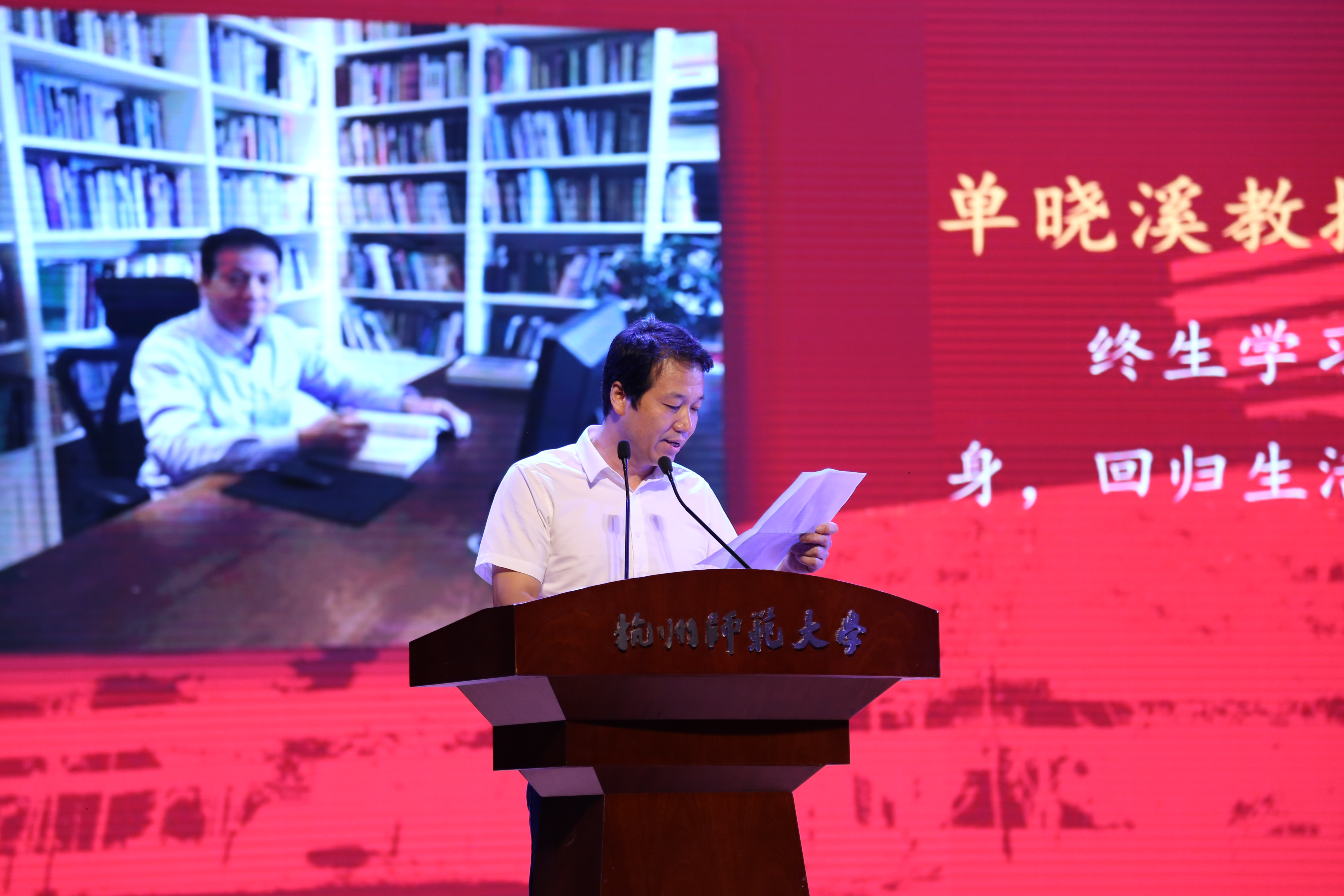 7月9日晚6时30分,x小黄书 2021届学生毕业典礼于叔同剧场隆重举行。全体2021届毕业生、学院领导班子成员、各毕业班班主任、研究生导师、中文系和历史系教师代表以及全体行政教辅人员参加此次毕业典礼。党委副书记钱珊主持典礼。