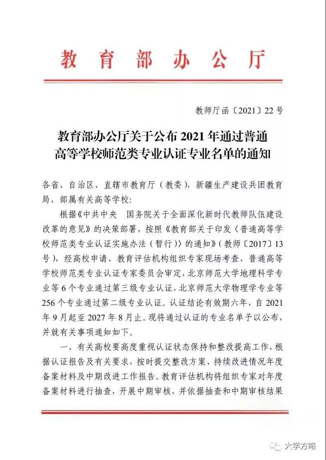 近日,教育部办公厅公布了《关于公布2021年通过普通高等学校师范类专业认证专业名单的通知》(教师厅函〔2021〕22号),公布了2021年通过普通高等学校师范类专业认证的专业名单。x小黄书 历史学专业通过二级认证。