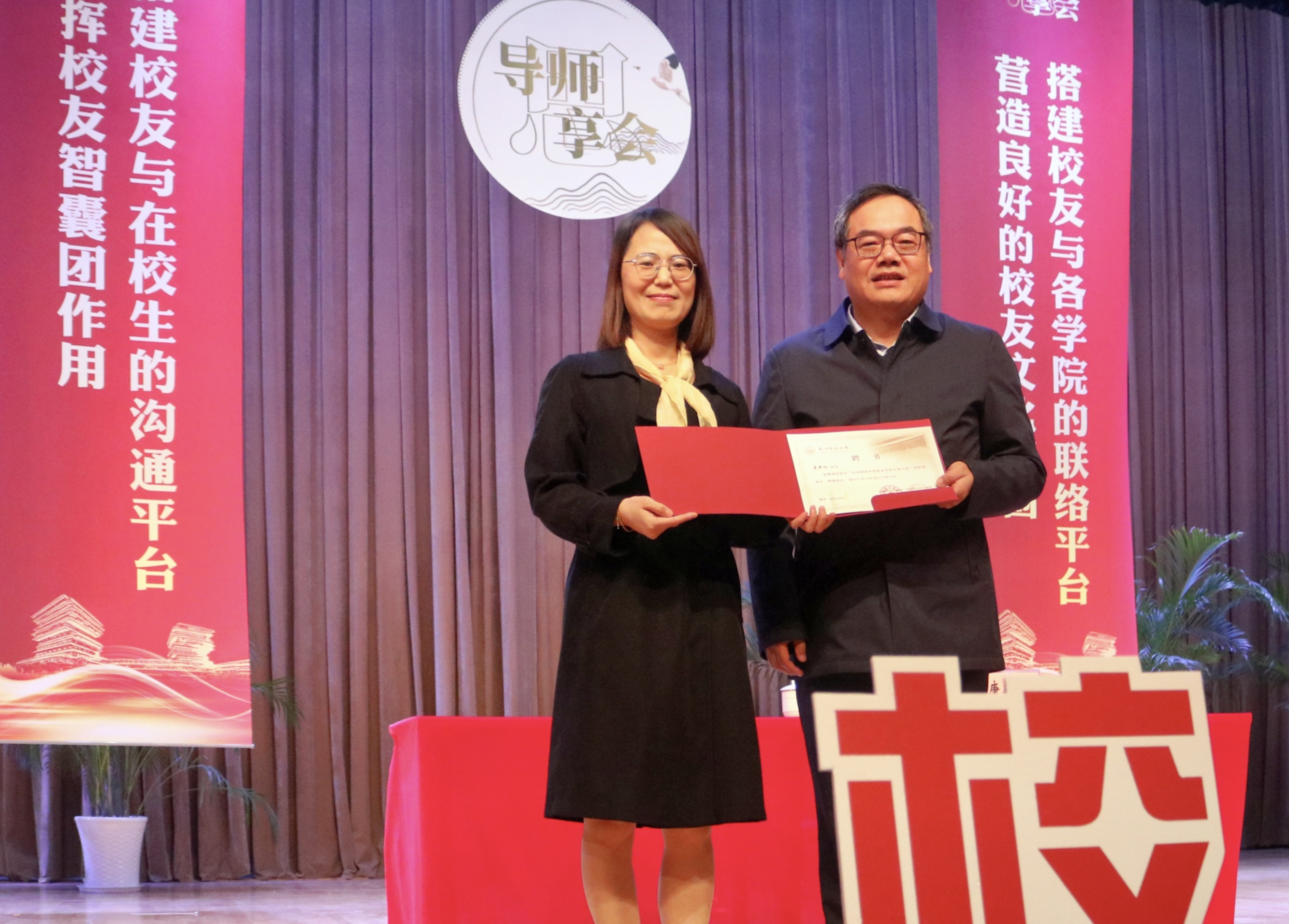 思享会上,校友联络办(校友办)相关负责人和学院相关负责人分别为唐新红校友颁发了“校友导师引领计划”导师聘书和导师思享会讲座纪念牌。
