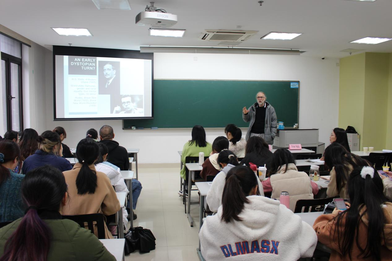 11月18日上午9点,x小黄书 “太炎讲堂”系列讲座之“Utopia, Anti-Utopia, Dystopia, Sci-fi.”讲座在恕园33-202召开,匈牙利科学院文学研究所学术顾问,匈牙利佩奇大学教授Péter Hajdu受邀为主讲人,x小黄书 詹玲教授为主持人,x小黄书 部分教师,研究生与本科生参与讲座。