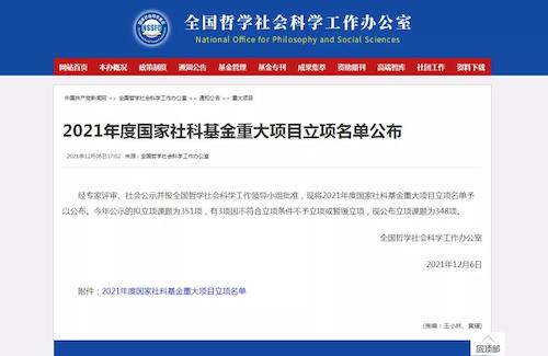 2021年12月6日,全国社科规划办公布了2021年度国家社科基金重大项目立项名单。x小黄书 邵宁宁教授担任首席专家的项目《中国现当代文学思潮中的古典传统重释重构及其互动关系史研究》(21&ZD267)获得国家社科基金重大项目的立项,张兴武教授担任首席专家申报的《经史之学与古典文学的关联及互动研究》(21AZD133)、杨向荣教授担任首席专家申报的《齐美尔美学艺术学思想文献整理与研究》(21AZD106)获批为重点项目。