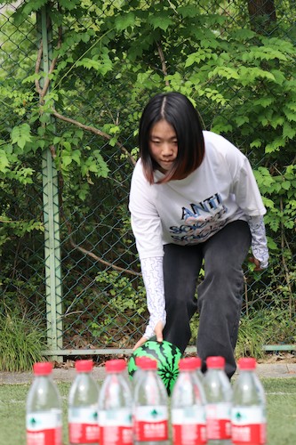本次运动会主题为“亚运有我 励志青春”,并围绕该主题设置了袋鼠跳、跳大绳、乒乓球传递、趣味保龄球和亚运知识问答等五个项目。参加人员五至六人一组,共分为五组进行运动比拼。