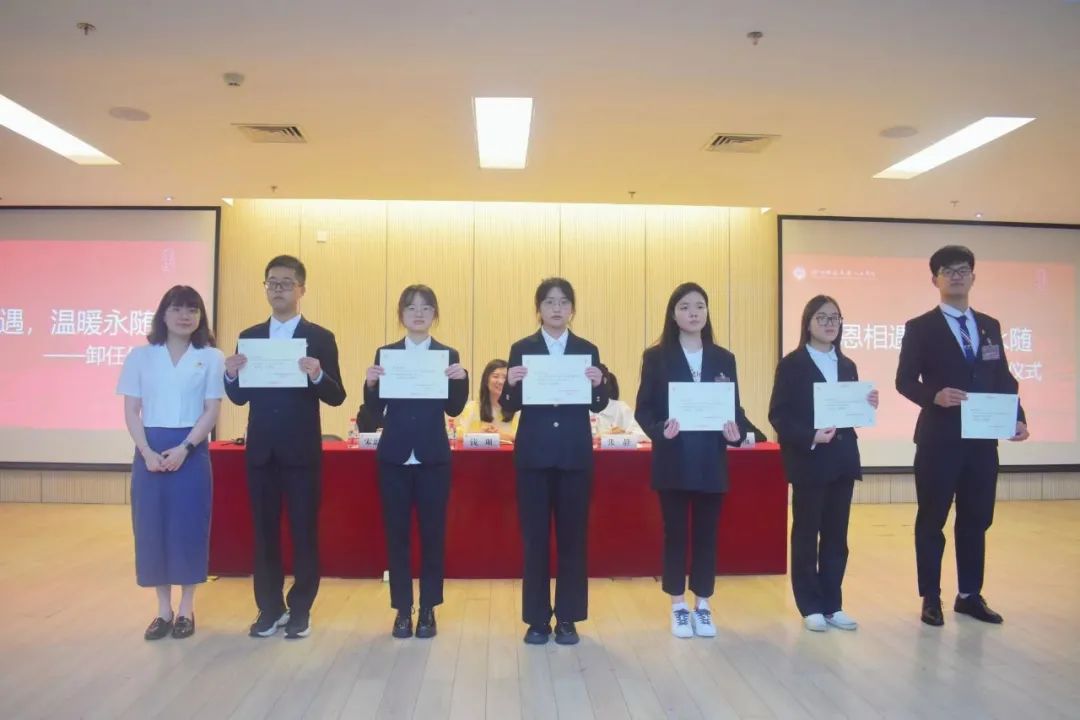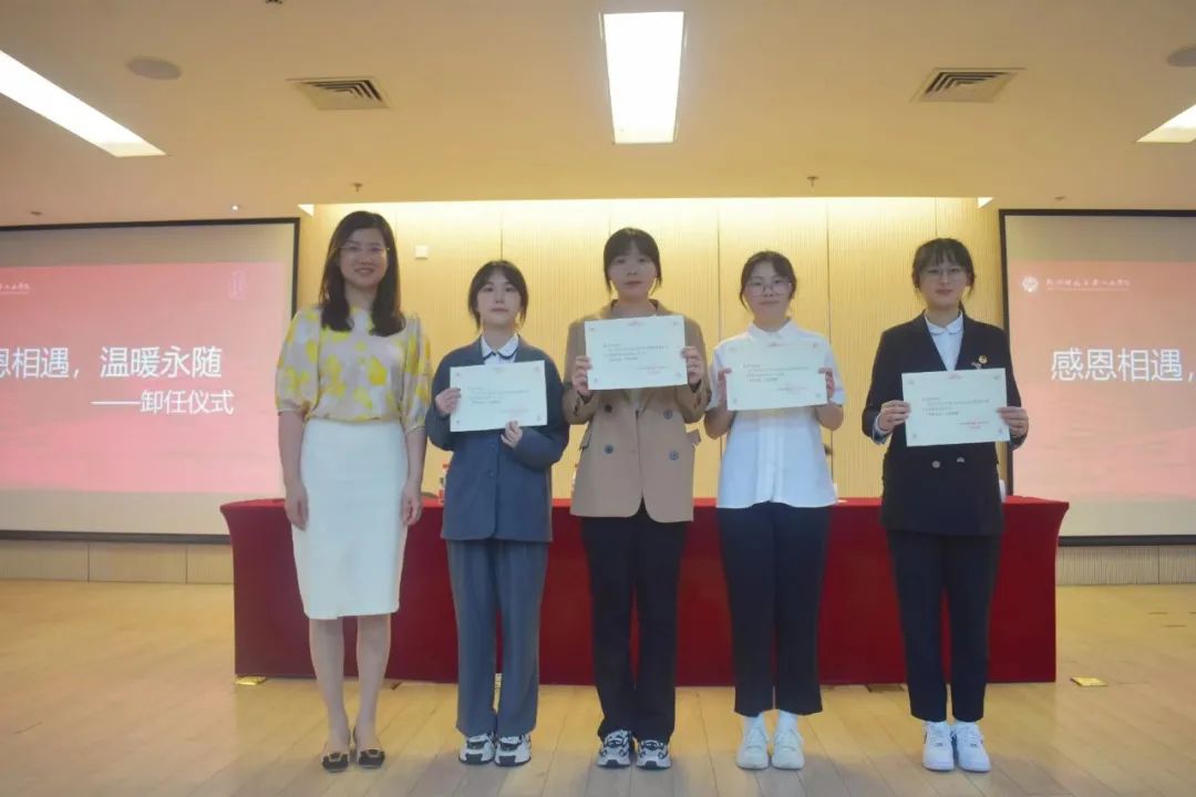 会议过程中还进行了主题为“感恩相遇,温暖永随”的卸任仪式,旨在感谢一年来为学院团委学生会、研究生会作出贡献的老一届学生干部及各社团的社长,出席会议的嘉宾们为他们颁发了证书。