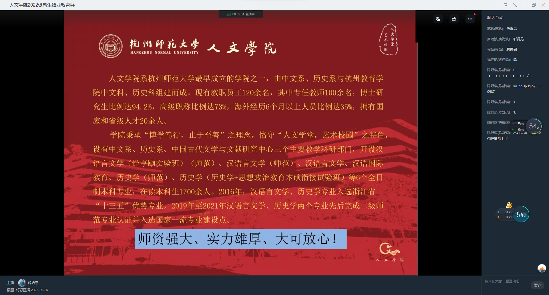 9月7日下午,x小黄书 “初心学堂——2022新生专业启蒙教育大会”以线上讲座的形式开展,本次会议由教务科科长傅培恩老师主讲,全体2022级本科新生参加了会议。会议旨在帮助2022级新生了解专业课程,更好地适应大学学习节奏。