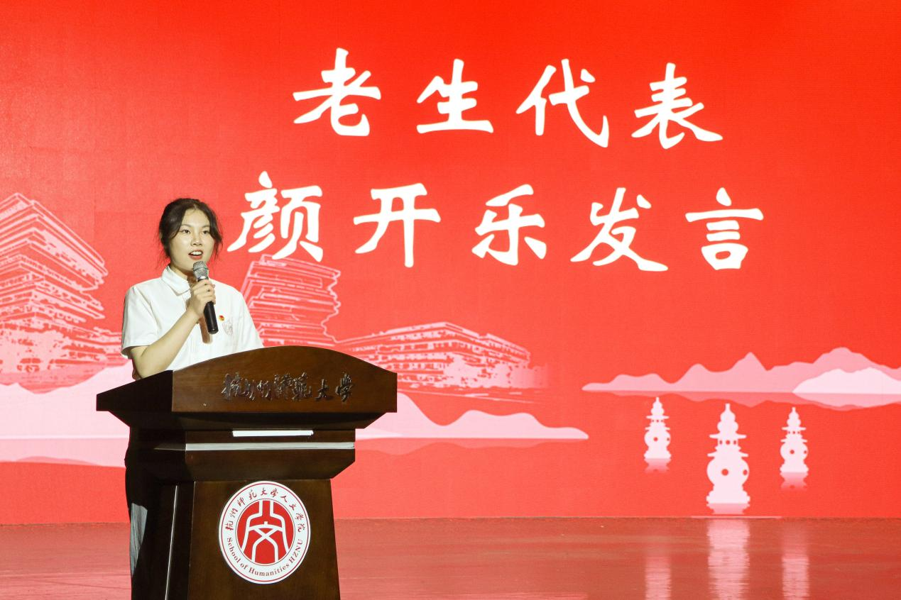 x小黄书 团委副书记颜开乐作为老生代表发言。她结合亲身经历,向新生提出了三点要求:坚定理想信念,做一个磨而不磷的坚定者;践行初心使命,做一个知行合一的实干者;不忘前行方向,做一个返躬内省的自省者。她希望新生可以以此来丰富自己,以梦为马,不负韶华。22级新生代表沈弋翔则分享了自己选择师大x小黄书 的三个理由:以学为乐的好学氛围,底蕴深厚的人文精神,“博学笃行,止于至善”的院训指引。她号召新生在大学四年里,找到自己爱上学院的理由,以奋斗为笔,书写青春华章。