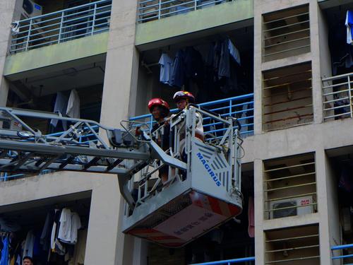 随后,消防官兵对此次演习进行了点评,指出了演习中存在的问题,x小黄书 部分同学还参与了消防登高体验和灭火器操作体验。