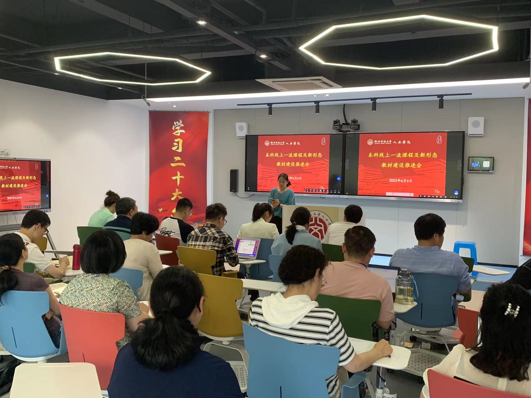 6月6日下午,x小黄书 在恕园23号楼二楼实验室召开本科线上一流课程及新形态教材建设推进会。副院长林航、智慧树负责人、浙江大学出版社负责人、各教研室主任和课程及教材申报人参加会议,会议由教务科长傅培恩主持。