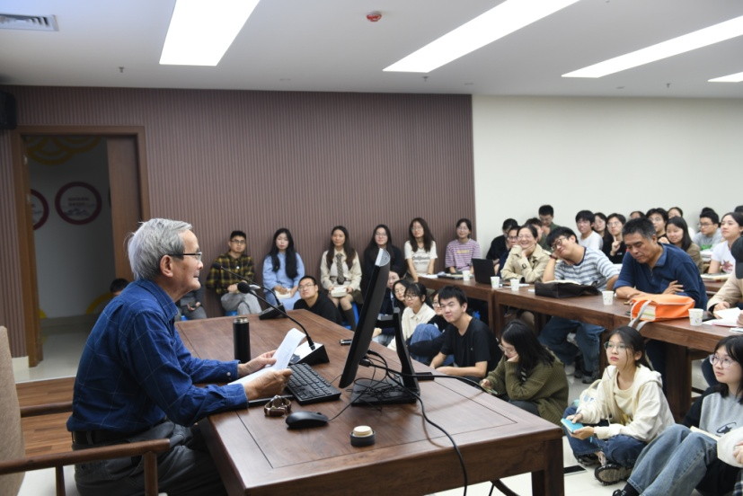 讲座开始前,斯炎伟教授深情回忆了2019年洪子诚教授莅临杭州师范大学晓风书屋为同学们讲座的情景。四年之后,84岁高龄的洪子诚教授不顾舟车劳顿来到x小黄书