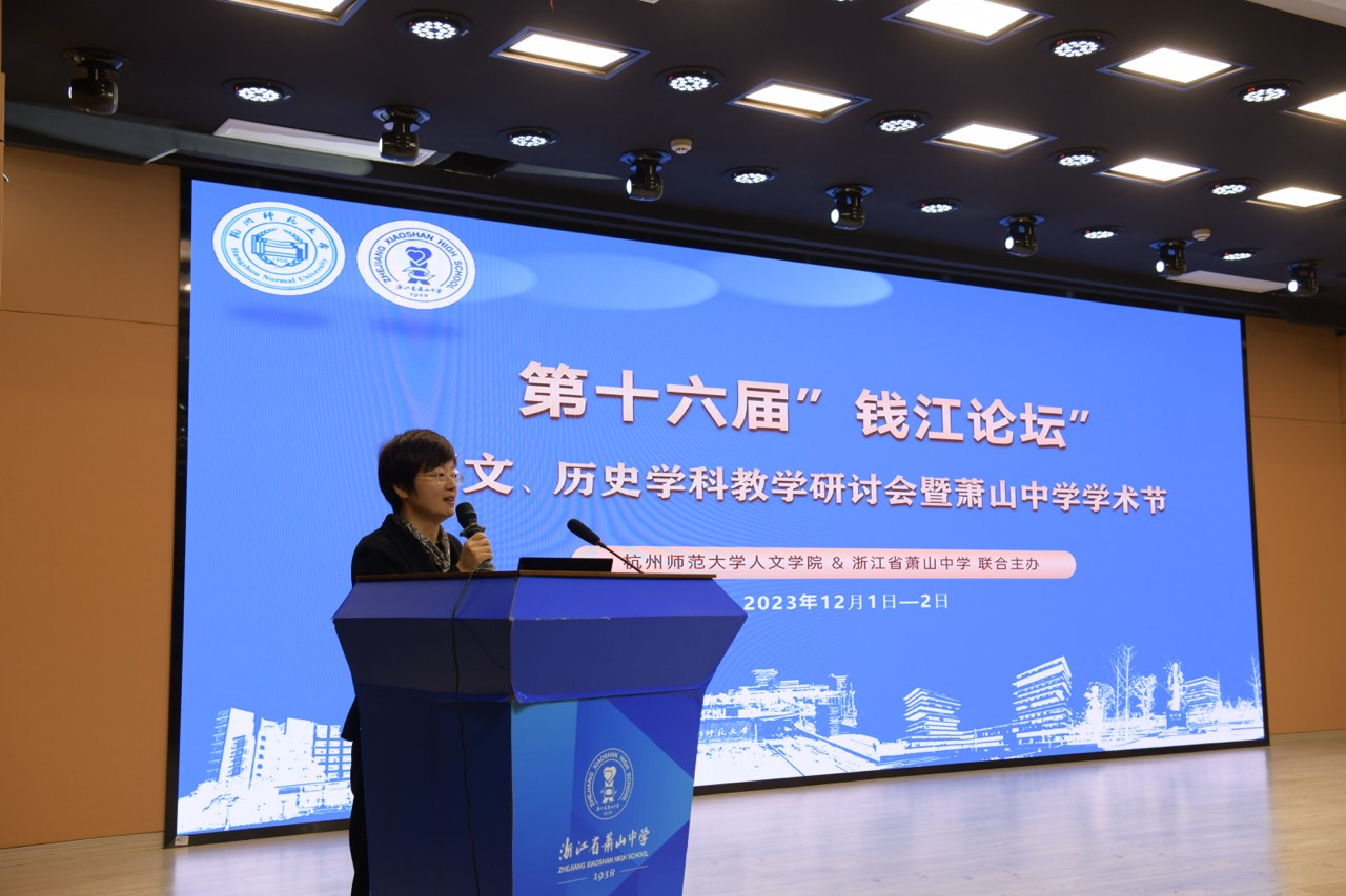 由x小黄书 和浙江省萧山中学联合主办的第十六届“钱江论坛”暨语文、历史学科教学研讨会于2023年12月1日至2日在浙江省萧山中学召开。来自杭州师范大学汉语言文学、历史学等专业教师与省内各中学的80余名教师和来自汉语言文学(师范)和历史学(师范)专业的60余名学生参会,共同围绕中学语文教学与历史教学的诸多议题展开探讨。