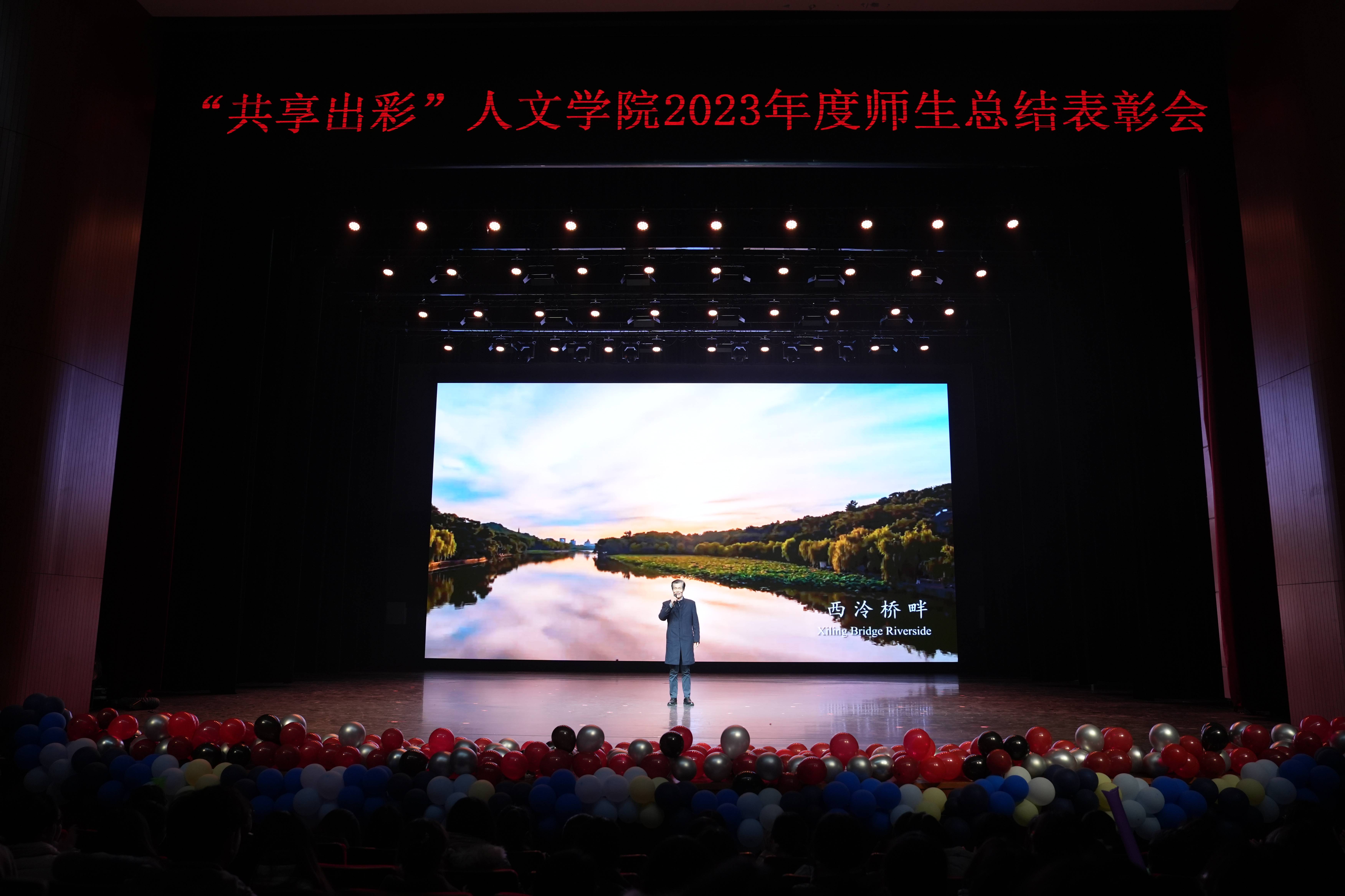 大会在师生合唱开场歌曲《是老师是学生》中拉开序幕。表彰大会分奋进人文篇(教育教学类荣誉)、创新人文篇(学术科研类荣誉)和聚力人文篇(综合育人类荣誉)三个环节,对2020年至2023年之间的获奖代表进行表彰。在奋进人文篇,主要表彰国家级一流课程、教育部产学合作协同育人项目、省级课程思政示范课程、优秀研究生课程、省“十四五”研究生教学改革项目、省优秀研究生教学案例、省十四五首批新四科重点教材等43个奖项;在创新人文篇,主要表彰国家社科基金重大项目、中华优秀传统文化专项课题(A类)重点立项、国家社科基金重点项目、全国教育科学研究优秀成果奖、国家社科基金优秀博士论文出版项目、国家社科基金青年项目、省哲学社会科学领军人才培育课题(青年英才培育)、第二十一届哲学社会科学优秀成果奖基础研究类一等奖、第二十二届哲学社会科学优秀成果奖基础研究类二等奖、浙江文化研究工程重大项目、权威期刊上发表论文等70个奖项;在创新人文篇,主要表彰全国高校黄大年式教师团队、第三批国家语言文字推广基地、全国党建样板支部、省“三育人”先进集体、省首届思想政治工作精品项目、省师德楷模、浙江省有突出贡献中青年专家、省“之江青年社科学者”、省宣传文化五个一批青年人才、第十八届“挑战杯”全国大学生课外学术科技作品主体赛道一等奖、红色赛道三等奖,第十八届“挑战杯”大学生课外学术科技作品竞赛省级金奖、第九届省国际“互联网+”大学生创新创业大赛省银奖、第十四届浙江省大学生职业规划大赛金奖、第五届中华经典竞赛、第十六、七届师范生教学技能竞赛一等奖 、“田家炳杯”第八届全国师范院校师范生教学技能竞赛一等奖、2022年全国百强暑期社会实践团队、团中央“法治中国青春行”三下乡专项实践活动全国百强团队、大学生社会实践成果“千校千项”网络展示活动优秀项目、杭州市教育系统先进团委、杭州教育系统先进团支部、杭州教育系统优秀团员等88个奖项。
