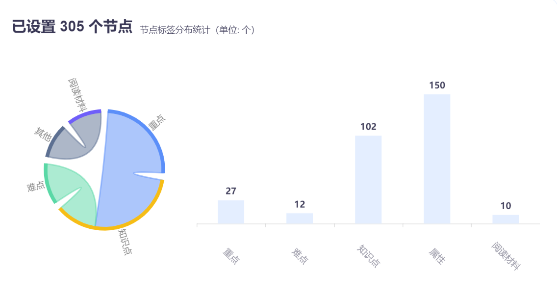 该知识图谱系统梳理了课程中的155个重要知识点、绘制320个知识点关系、匹配304个教学资源,并以结构化的形式描述课程内所包含的知识点、教学资源、教学活动、测评方式之间的关系,具有知识管理、学习导航、学习评估等功能。此项技术的应用,可为学生提供更加高效、精准的知识学习路径。