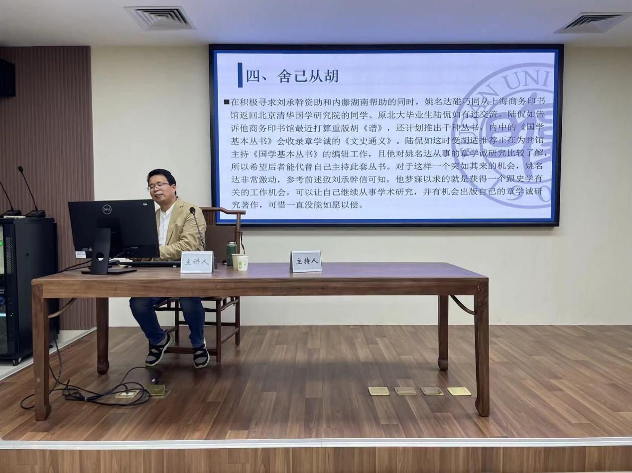 2024年5月9日晚上,x小黄书 太炎讲堂系列讲座在恕园23号楼314会议室举行,复旦大学历史系教授张仲民老师受邀作题为《舍己从人:姚名达的章学诚研究之路》的讲座,历史系陈明华副教授担任主持人。x小黄书 历史学系薛玉琴、周东华、王才友、徐杨、孙超、张赟冰、余辉等老师和众多学生参加,共同聆听了这场学术盛宴。
