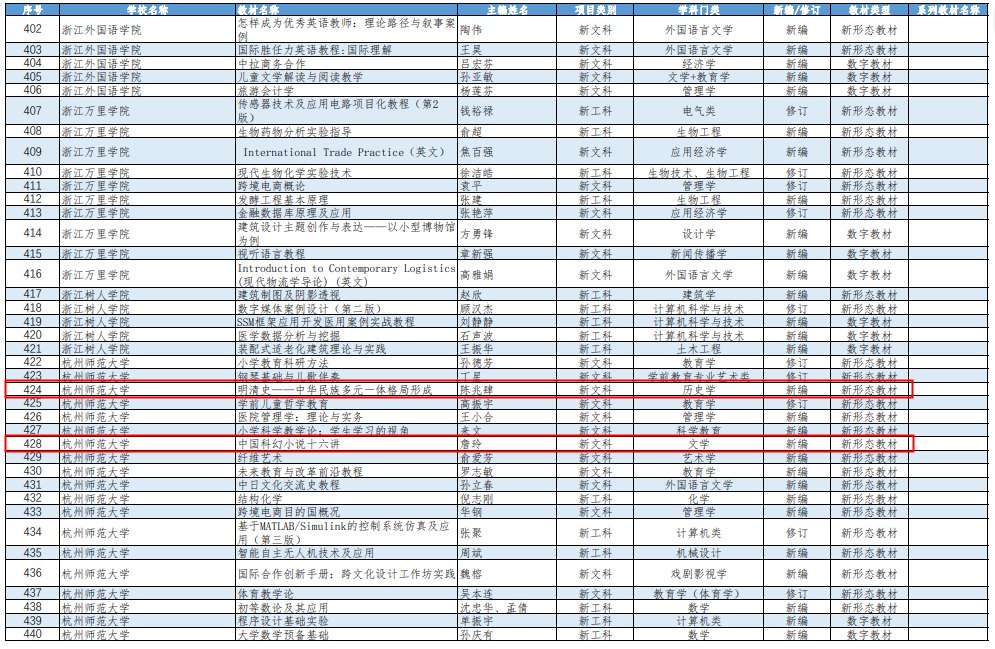 近日,浙江省高等教育学会公布了浙江省普通本科高校“十四五”第二批新工科、新医科、新农科、新文科重点教材建设项目评审结果。x小黄书 两部教材获批立项,分别为陈兆肆教授的《明清史——中华民族多元一体格局形成》、詹玲教授的《中国科幻小说十六讲》。