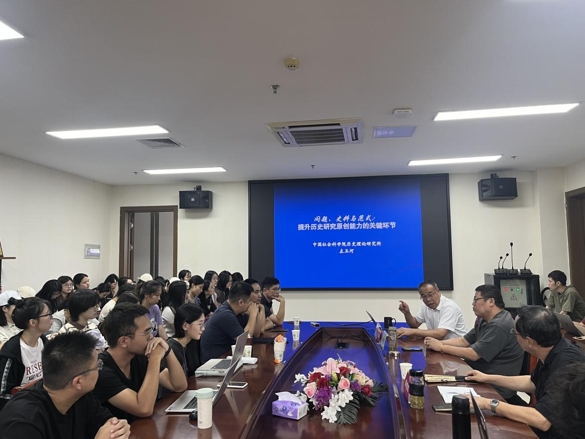 2024年9月21日下午,x小黄书 太炎讲堂系列讲座在恕园23号楼312会议室召开,中国社会科学院历史理论研究所副所长、博士生导师左玉河老师受邀作题为“问题、史料与范式:提升历史研究原创能力的关键环节”的讲座,历史学系周东华教授担任主持人。x小黄书 历史学系林航、琚小飞、任虎等老师和众多学生参加,共同聆听了这场学术盛宴。