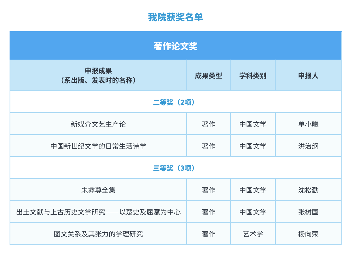高等学校科学研究优秀成果奖(人文社会科学)是教育部为表彰奖励高校哲学社会科学工作者取得的突出成绩,展示高校社科界服务党和国家事业发展的重大理论与实践成果,鼓励严谨治学、勇于创新、铸造精品,推动高校加快构建中国特色哲学社会科学、建构中国自主的知识体系的一项重大举措。迄今已成功评选了九届,本届评选的是2018年1月1日至2021年12月31日期间的成果。