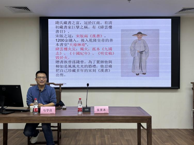 2024年11月15日上午,太炎讲堂“比较视野下制度和思想文化”系列讲座在杭州师范大学仓前校区恕园23号楼312会议室召开,中国国家图书馆副研究馆员马学良老师受邀作题为“古人的藏书与读书”的分享。讲座由历史系副研究员张赟冰老师主持,历史系琚小飞、沈秋之、赵卓等老师及研究生、本科生等,一起参与此次讲座。