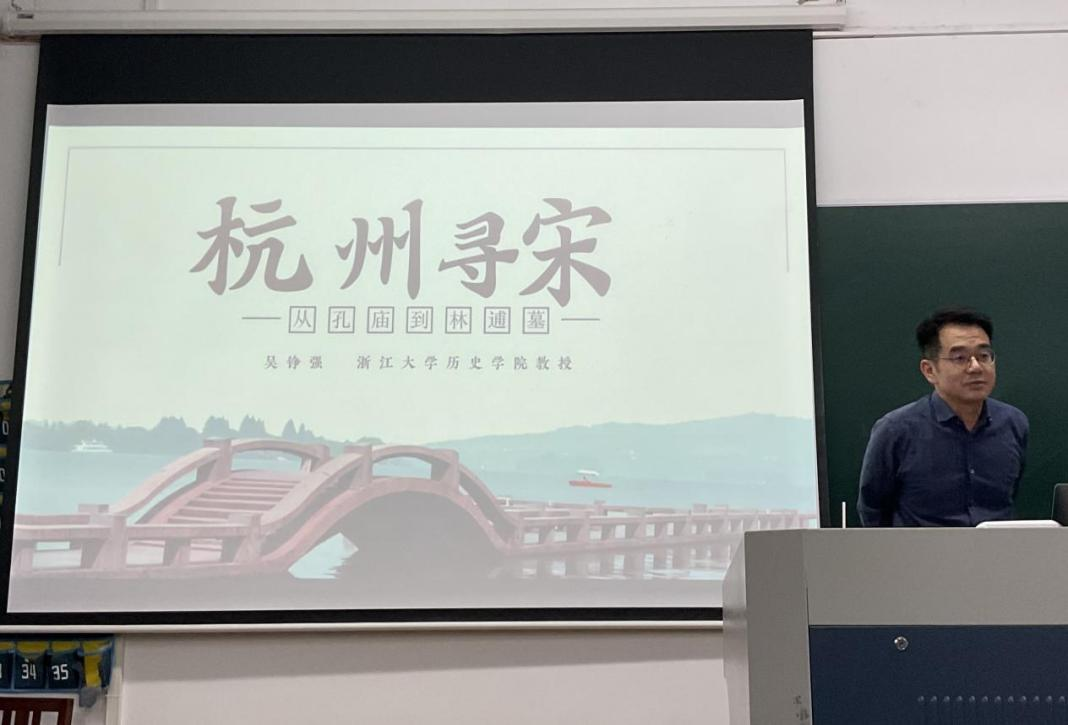 4月25日下午14时,x小黄书 太炎讲堂“比较视野下的制度与思想文化”系列讲座活动于下沙校区A号楼512教室顺利开展。本次活动有幸邀请到浙江大学历史学院宋史研究中心吴铮强教授作题为“杭州寻宋:从孔庙到林逋墓”的专题讲座。讲座将杭州宋朝遗韵的胜迹路线串联起来,解码各遗址尘封的往事,并解析自然景观背后的文化权力和政治重建。此次讲座由x小黄书 林航教授主持,范立舟教授、陈兆肆教授、赵卓博士、姚鲁元博士及历史系本科生60余人参加。